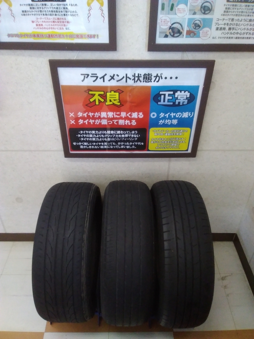 偏摩耗や、ハンドルが左右に流れる等の症状が現れます!!