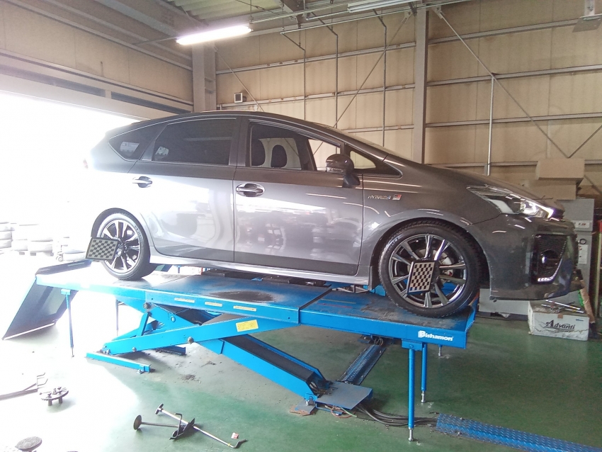 先日、トヨタ GRプリウスαのアライメント調整を施工致しました!