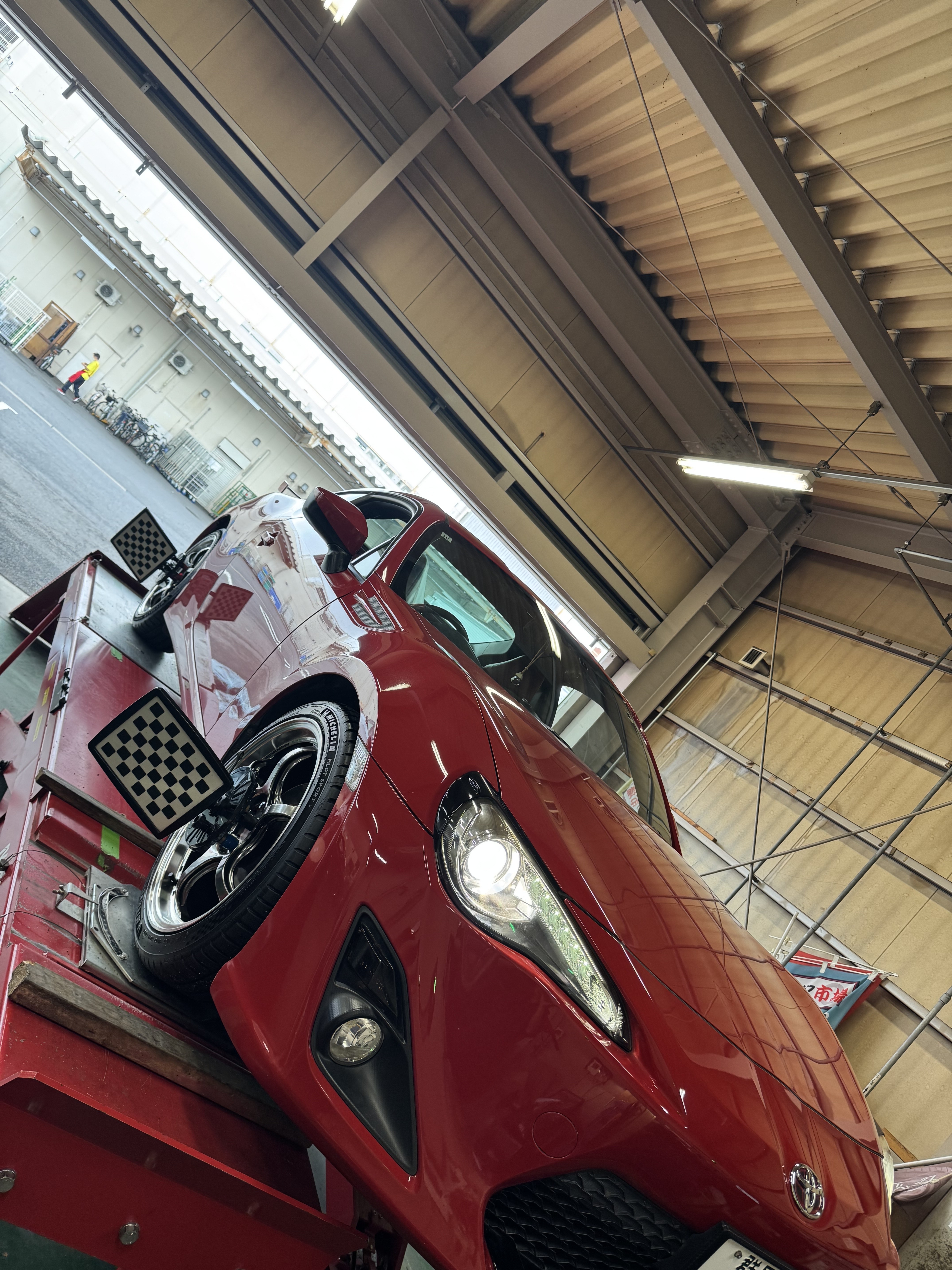 トヨタ 86 ホイールセットでタイヤ交換とアライメント調整をお任せ頂きました!!タイヤはミシュラン製のハイグリップタイヤ パイロットスポーツ5!!タイヤ交換と同時にアライメント調整も行いました!!足利・太田・桐生・邑楽エリアにお住いの方、その他の地域にお住いの方も是非!