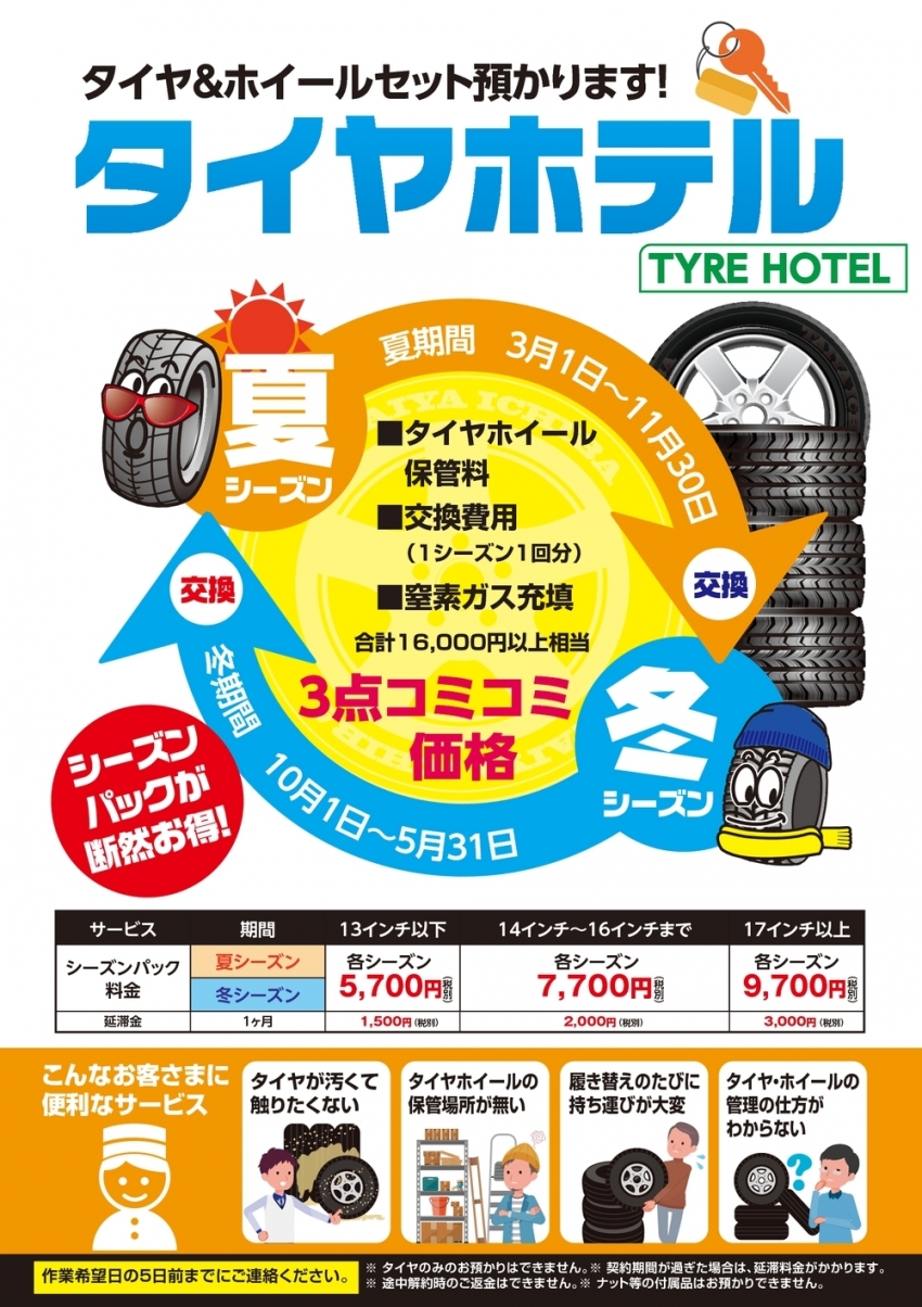 そんな時は当店の「タイヤホテル」をご利用下さい!!