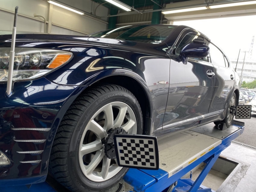 LS500のアライメント作業です、測定してみると大分ズレてしまっている物です。
