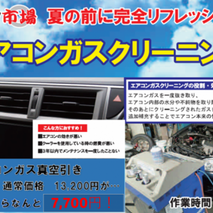 7月末までのお得な価格!!車の中で・・・暑い!汗だく!!お子様の為に!!快適なドライブを!!!本格的な夏前に!真空引きがお得です!