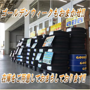 ゴールデンウィーク前!! タイヤも万全の準備で、楽しい連休を!! タイヤメーカーさんはGW中、お休みです