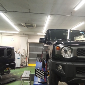 リフトアップしているジムニーでアライメント調整!!