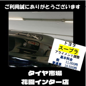 こんにちは(#^^#)タイヤ市場花園インター店今回トヨタスープラアライ...