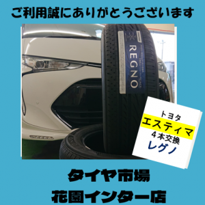 こんにちは!タイヤ市場花園インター店今回トヨタエスティマ4本交換ア...