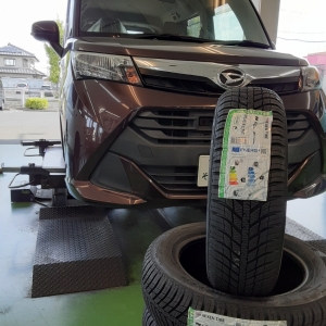 タイヤ市場伊勢崎宮子店でございます。ダイハツ・トールにオールシーズンタイヤ...