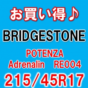 86、BRZ、カローラスポーツなど215/45R17装着 カジュアルスポーツタイヤをお求めの方に!特価品ブリヂストン ポテンザ アドレナリンRE004