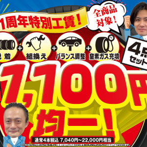 11周年につき、タイヤ交換工賃がなんと1,100円!