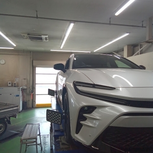 新型クラウンスポーツでアライメント調整です!まだ1万キロ走行していません...