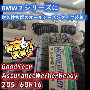 BMW2シリーズにオールシーズンタイヤ装着!GoodYear AssuranceWetherReady 205/60R16!