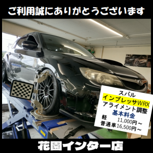 花園インター店です!!本日はスバルインプレッサWRXのアライメント調整...