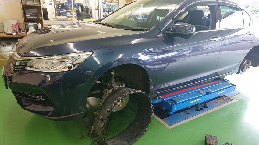 本日、バーストしてしまいレッカーで運ばれてきたお車です。