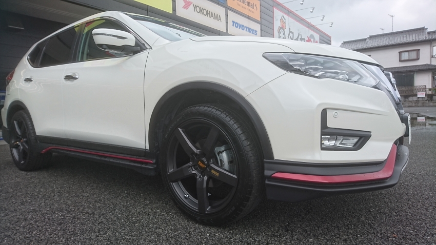 このエクストレイルはニスモ仕様でスポーティなルックスなので、スポーツテイストのホイールをチョイスしました☆