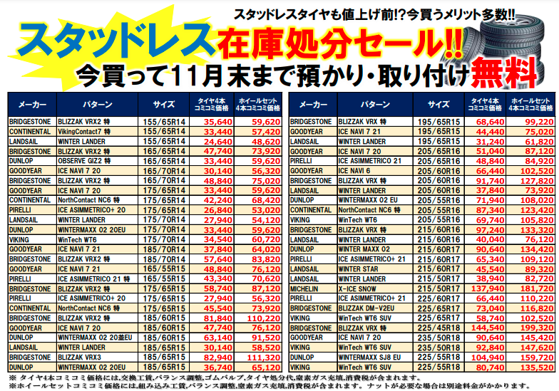 スタッドレスタイヤの値上がり大?