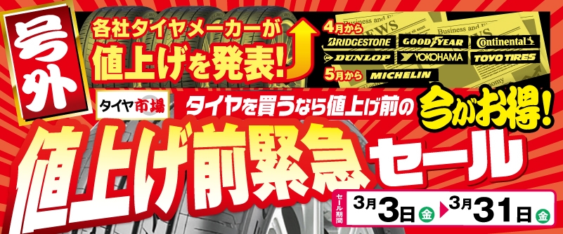 タイヤ値上げ前の緊急セール!!!