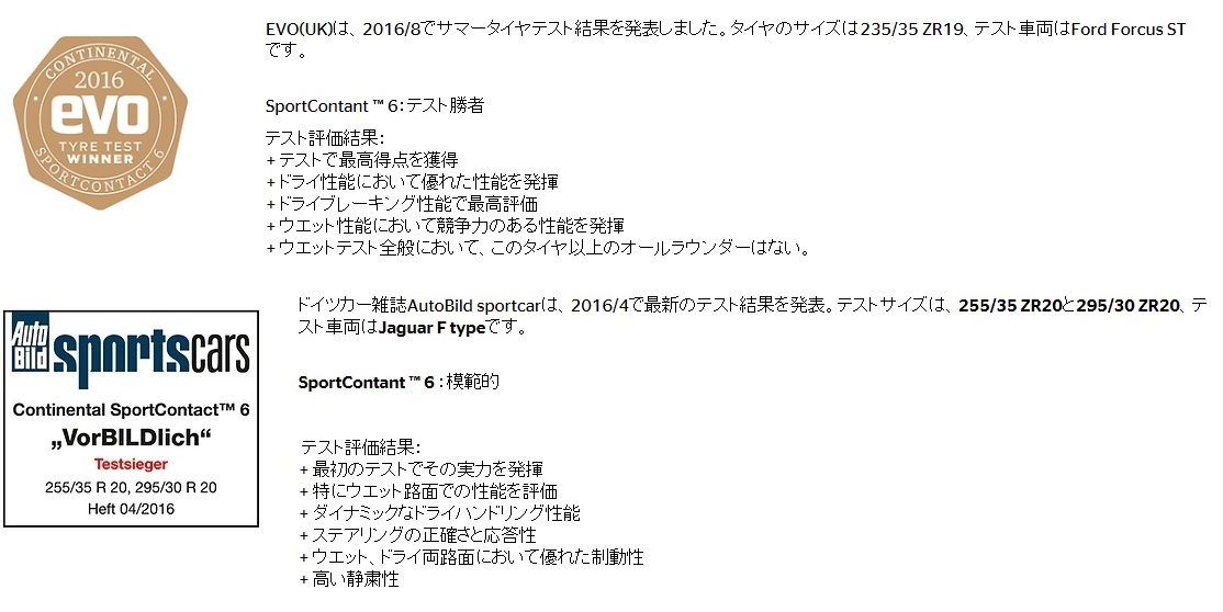 ご紹介するタイヤは、コンチネンタル スポーツコンタクト6 でございます。
