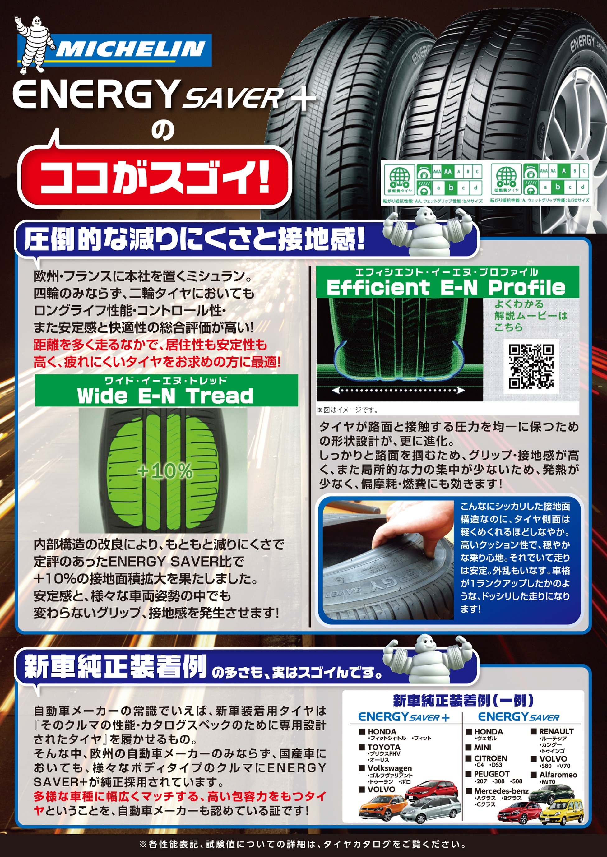 エナジーシリーズは高い安全性・低燃費・より長持ちを実現したタイヤです。