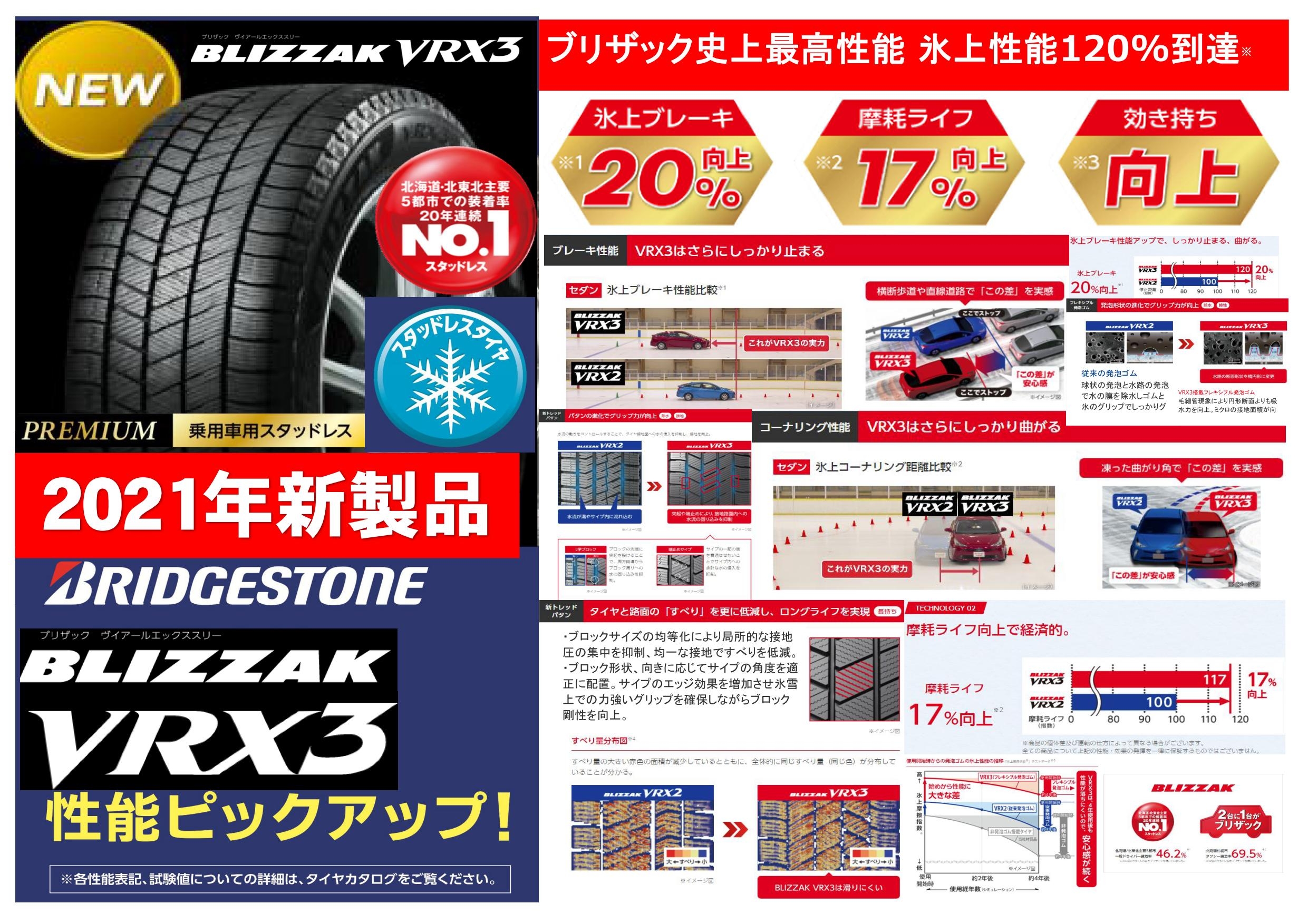 ブリヂストン BLIZZAK VRX3 BLIZZAK史上最高性能 氷上性能120%到達⇒VRX3