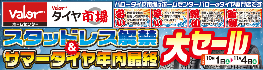 ☆10/1(土)~ スタッドレス解禁&サマータイヤ年内最終大セール 開催中!☆