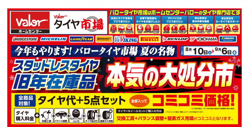 8月10日より旧年製スタッドレスタイヤ大処分市といたしまして、