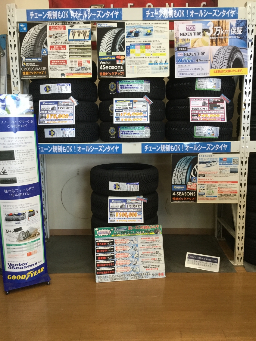 今、当店ではオールシーズンタイヤの推奨販売会を開催させていただいております!
