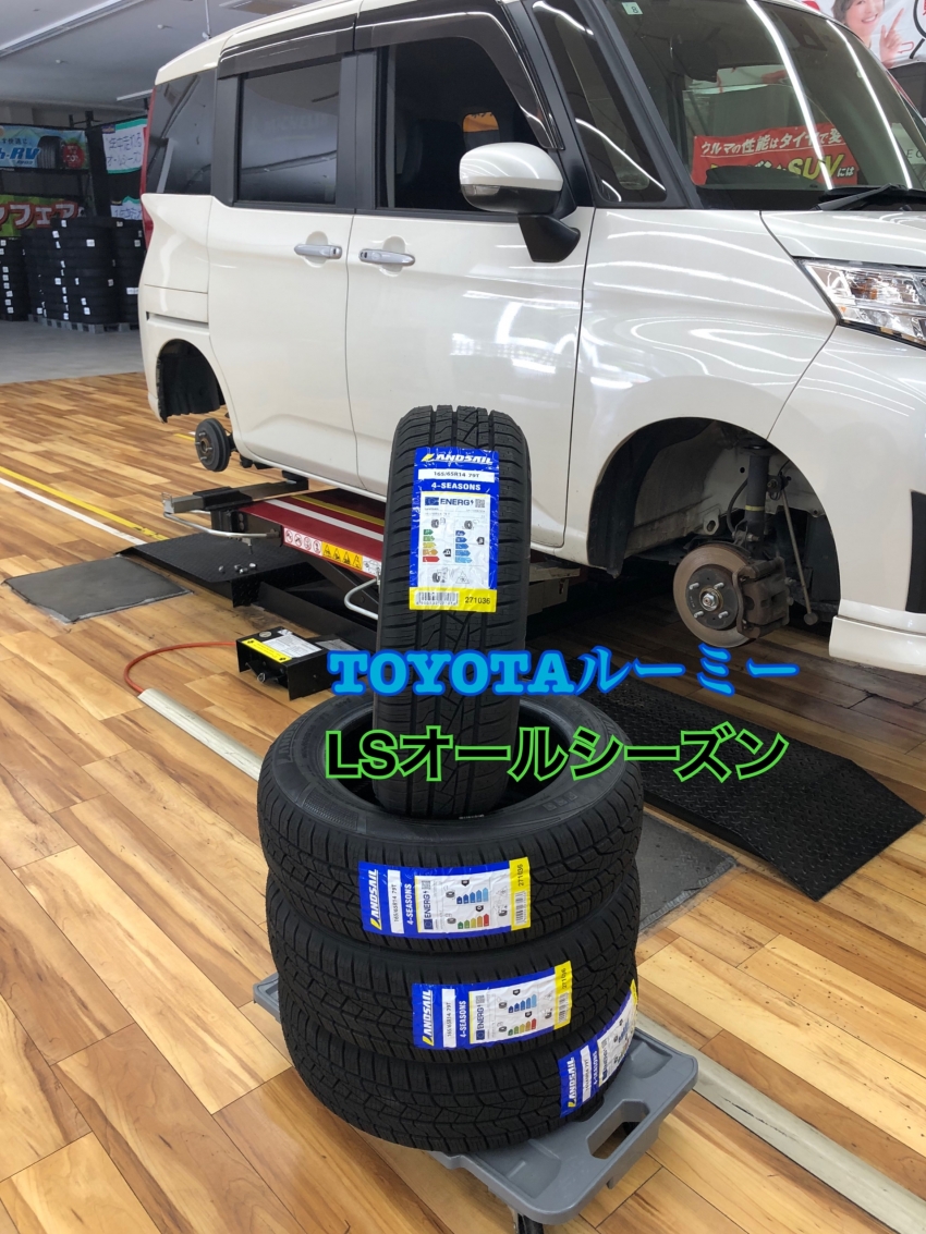 今回はTOYOTAルーミーにLANDSAIL 4-SEASONS(ランドセイル フォーシーズンズ)タイヤ市場おすすめのオールシーズンタイヤお取り付けさせて頂きました✨