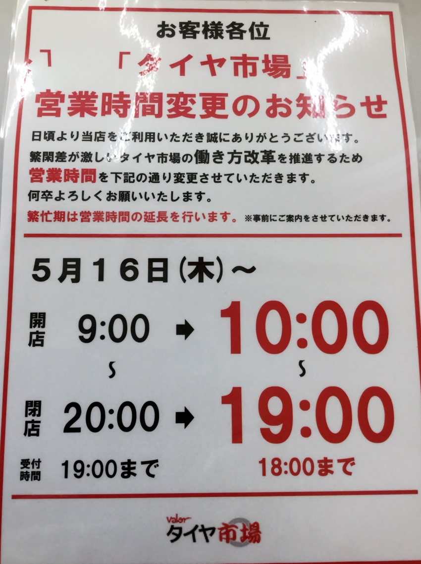 バロータイヤ市場では、一部営業時間の変更を行います。