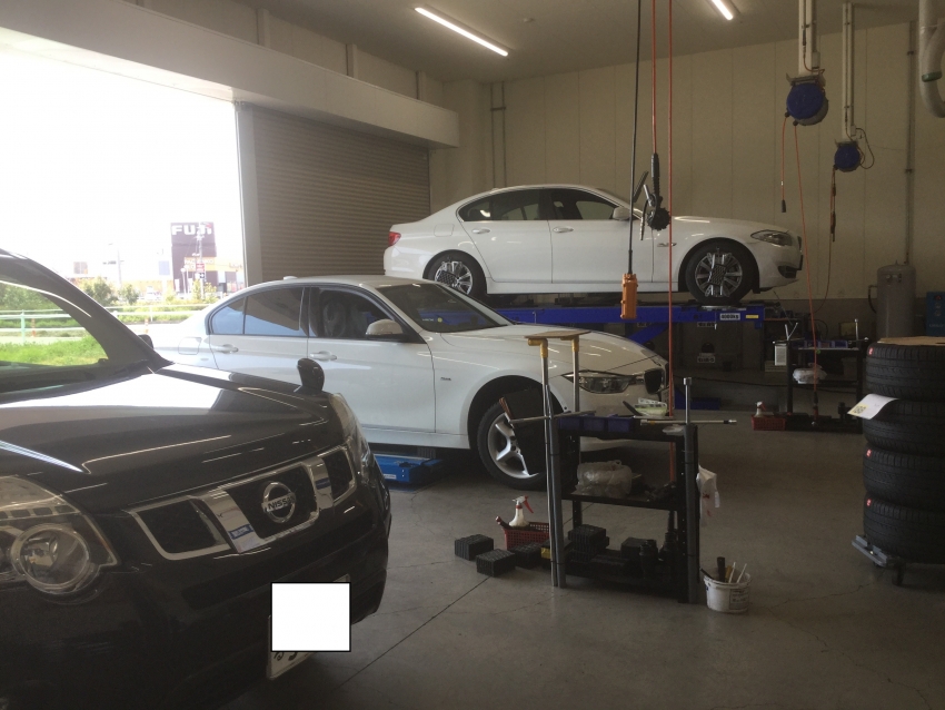 今日はエクストレイルの付替え、BMWのタイヤ交換とアライメント、珍しい車種ではテスラ モデル3も入庫!