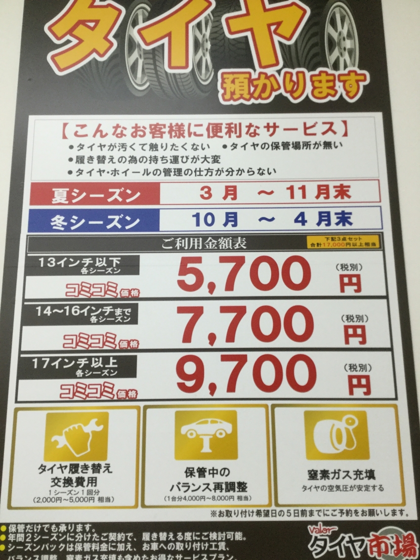 期間中の保管代、バランス調整代、タイヤの石取り、次回の付替え料金がパックになった