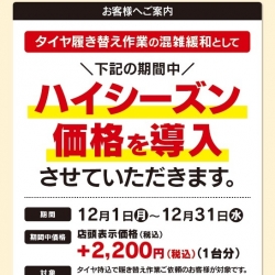 AM9:00~PM8:00(ピット作業受付:AM9:00~PM7:00)1月/2月/5月/6月/7月/8月/9月