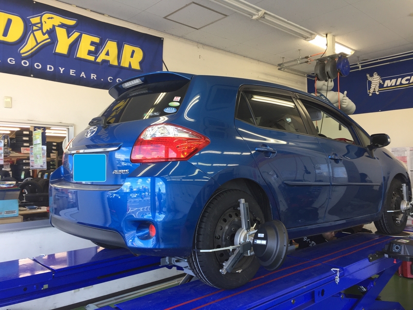 交換タイヤに偏磨耗が見られましたので、ホイールアライメント測定も同時に行いました!