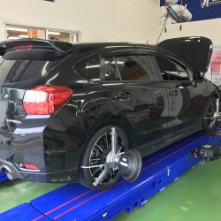 リア、フロント共にトゥが狂っており、タイヤも偏磨耗していたため、