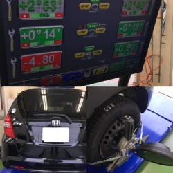 やはり縁石にぶつけてしまったのでアライメントに狂いが生じておりましたので、基準値内に戻しました!