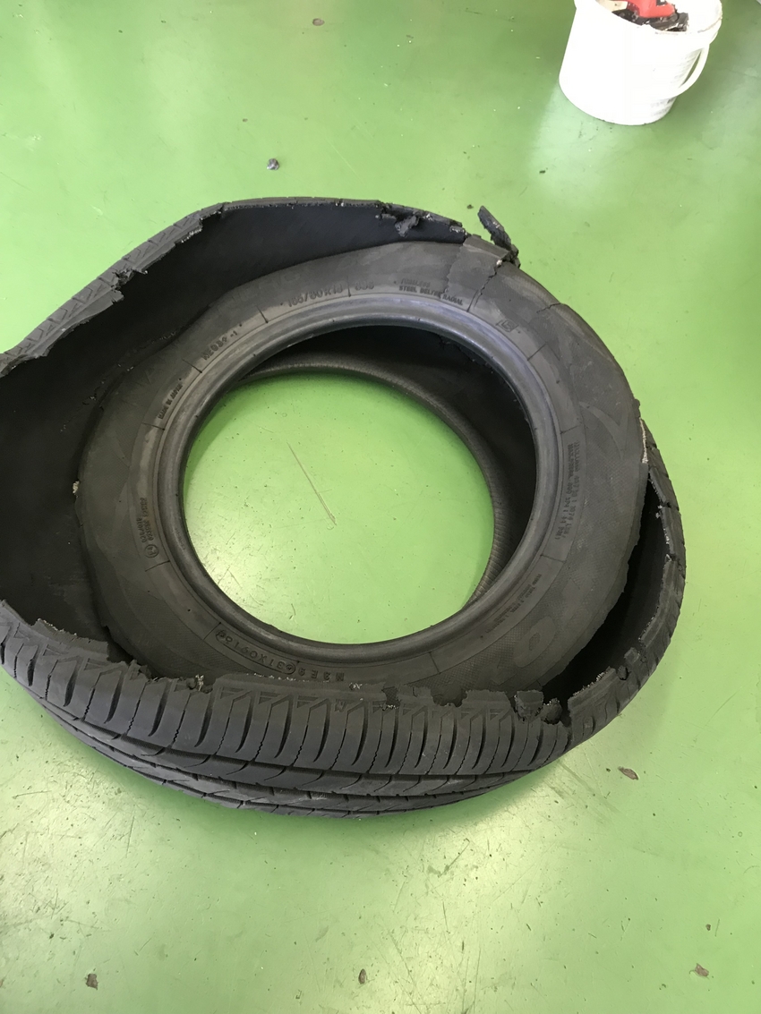 タイヤの空気圧が低すぎて、走行中にバーストしてしまったので新品タイヤに交換させていただきました!
