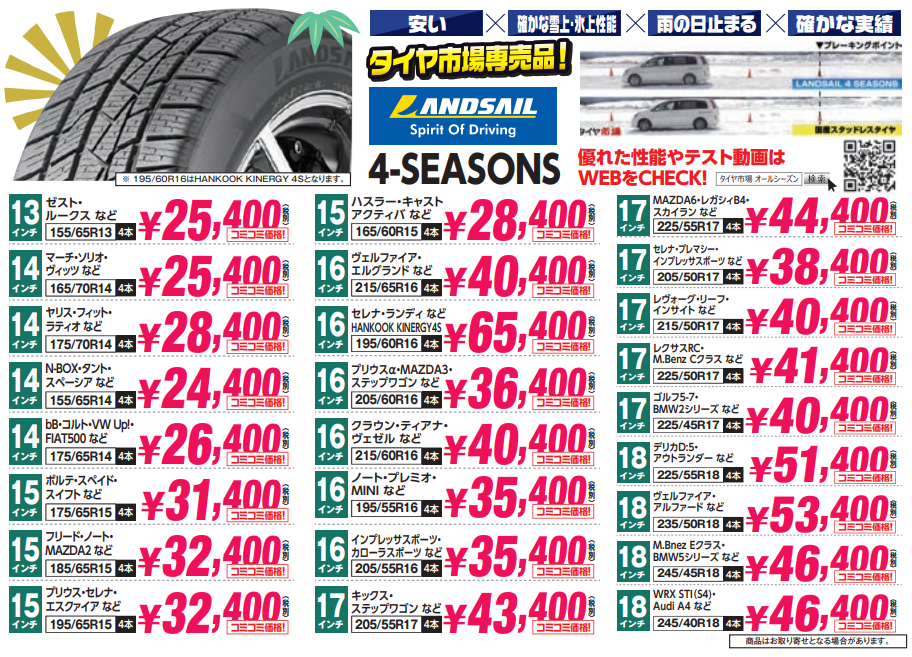リーズナブルなタイヤはこちら
