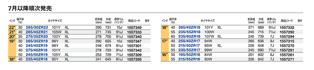 一部車種の新車純正装着タイヤとして
