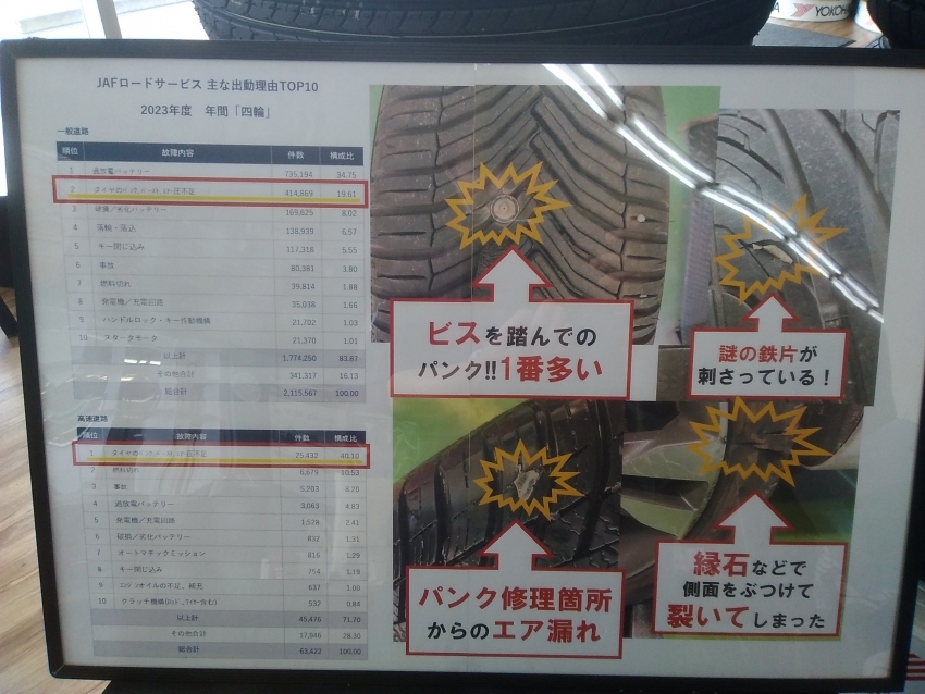 JAFロードサービスでパンク、バーストのトラブル、1位、2位