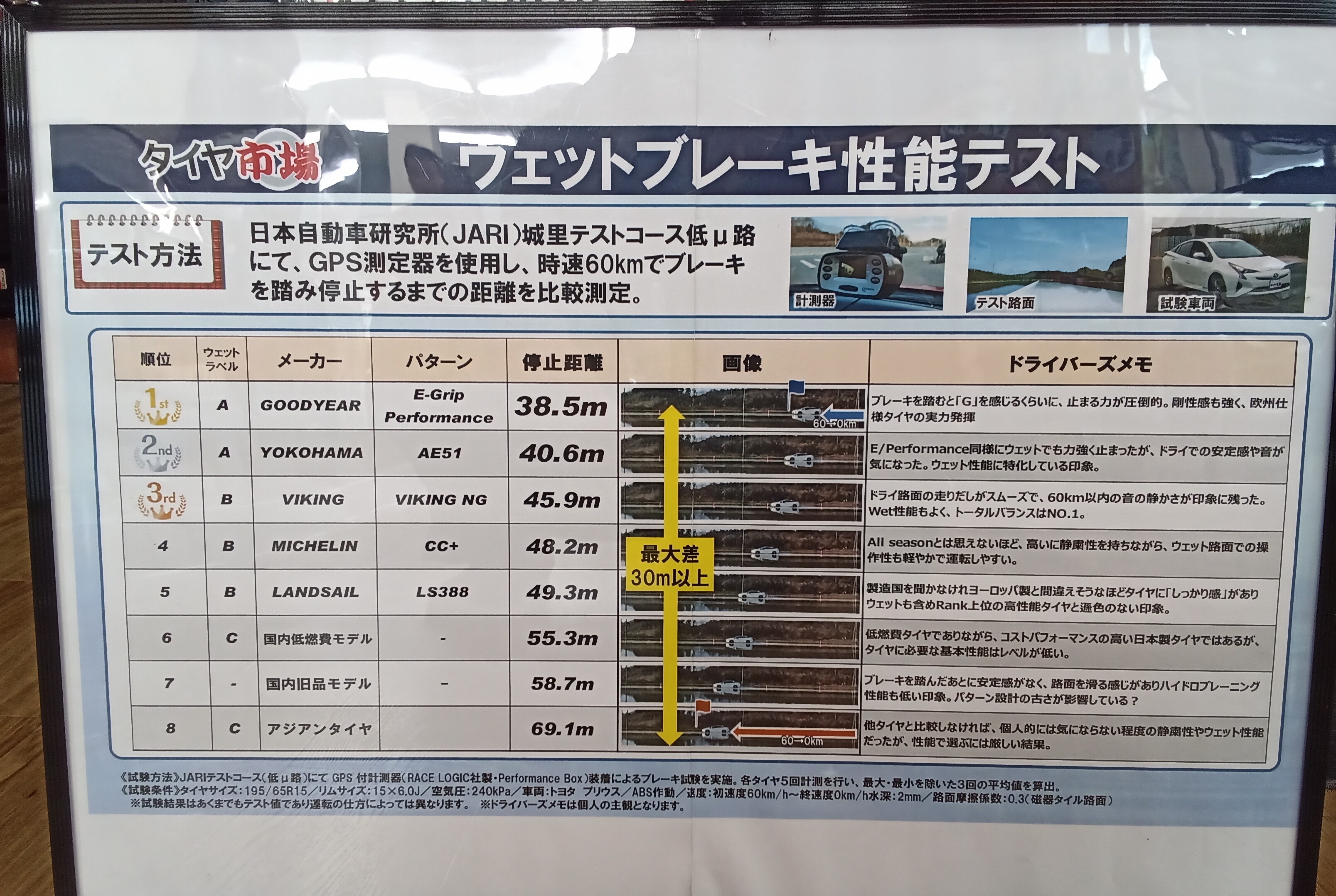 ウェットグリップが高いといっても制動力にどのくらいの差が出るの??