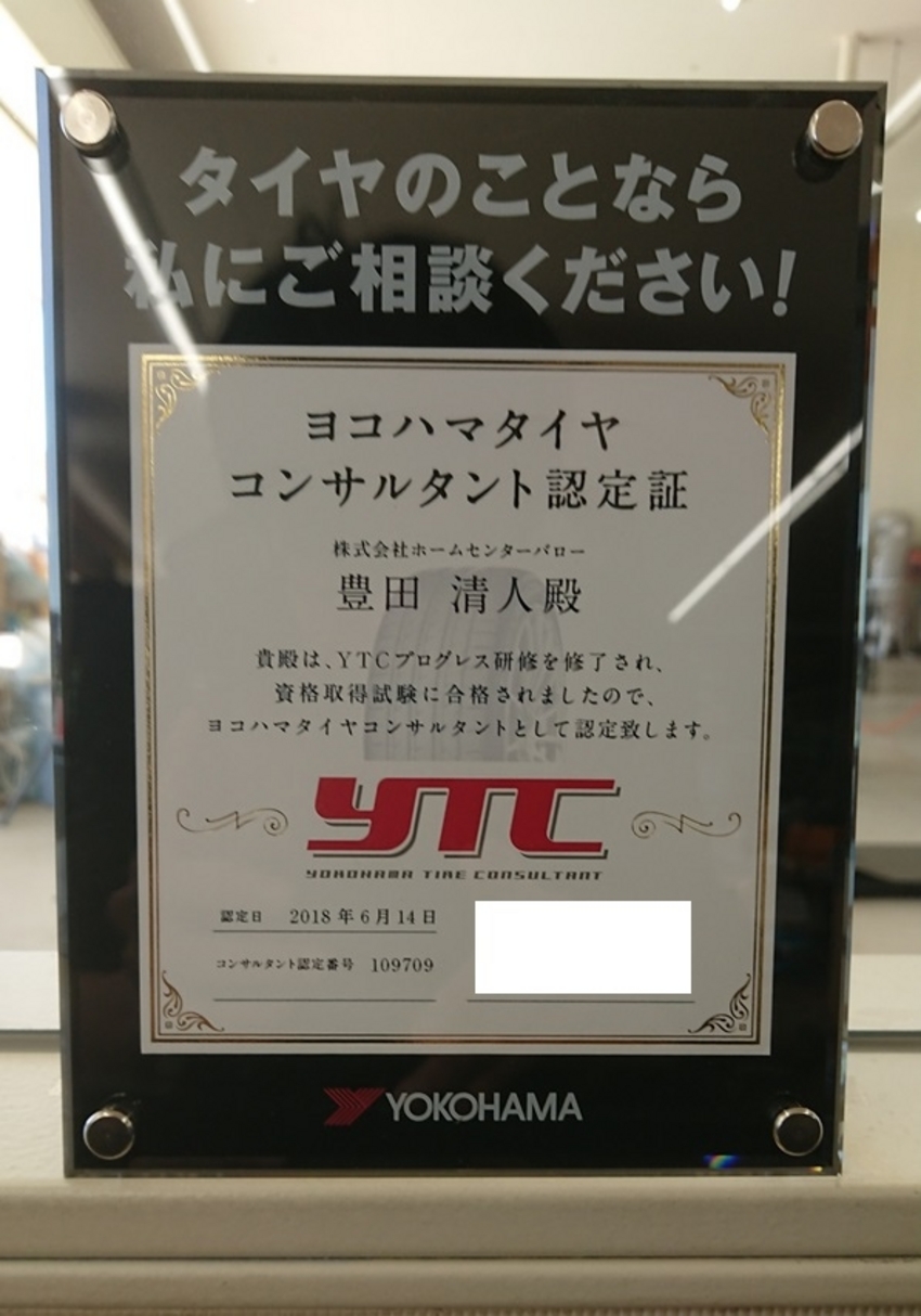 常時、このヨコハマタイヤ様の研修を受けてテストに合格したスタッフがいます。