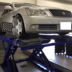 新品タイヤ、しかもREGNOに交換されるのでお客様にアライメント調整をご提案し、作業をすることにしました!