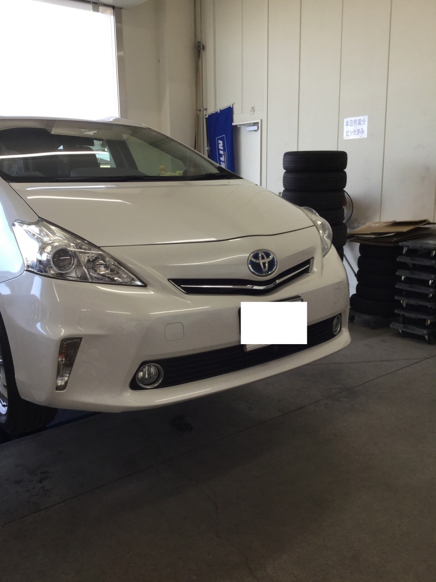 今回はトヨタ プリウスαのタイヤ交換+アライメント作業のご紹介です!