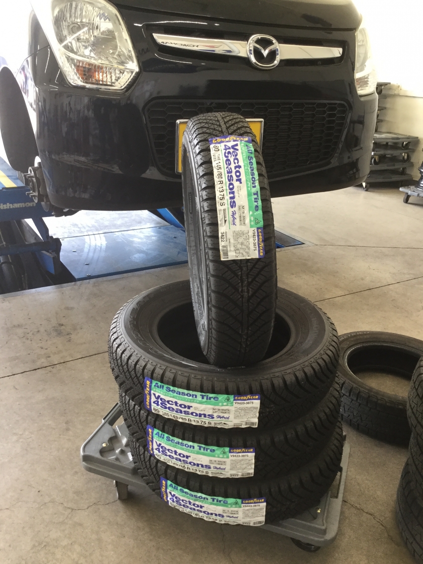 今回は、マツダ フレアワゴンに、オールシーズンタイヤである