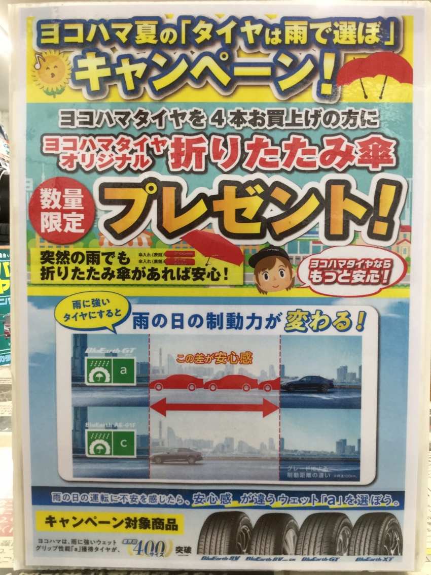 ヨコハマ夏の「タイヤは雨で選ぼ」キャンペーン実施中!!