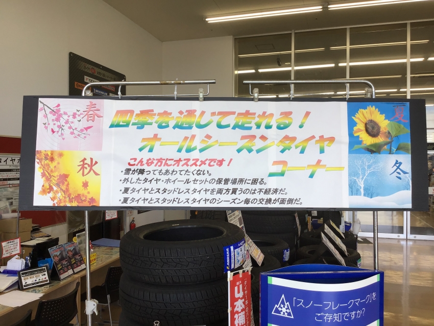 さて本日は以前よりパワーアップして爆誕したオールシーズンタイヤコーナーをご紹介!!