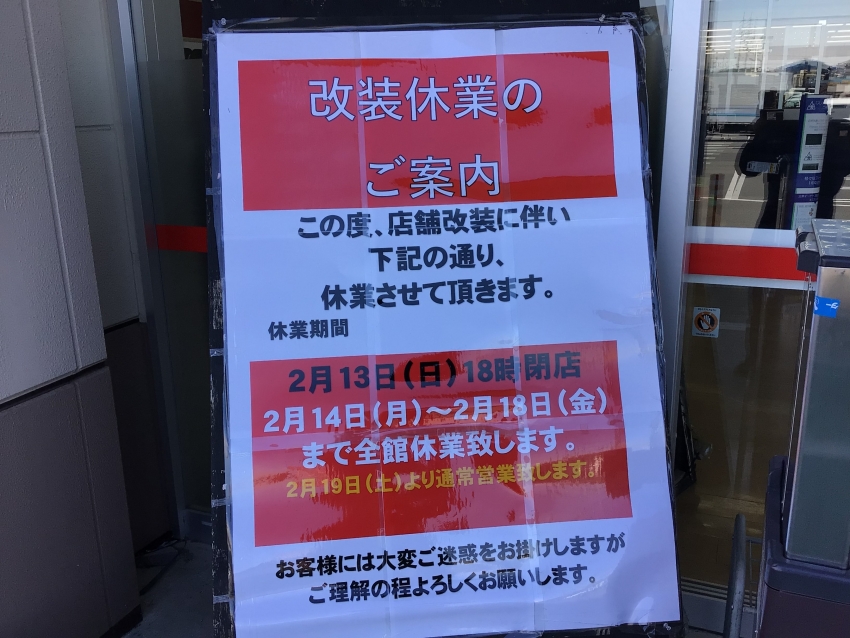 店舗改装による休業のご案内