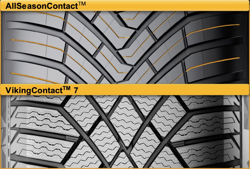 • ウィンター・パフォーマンス・レジンと高充填率のシリカを兼ね備えたトラクション・シリカ・コンパウンド,によって、AllSeasonContactは低温下でも常に柔軟性を保ちます。この路面に対する高い適応性により、雪に覆われた路面や濡 れた冬の路面でも優れたパフォーマンスが発揮されます。