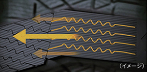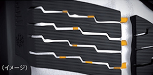 独自の3Dサイプテクノロジー滑りやすい原因となる氷上の水膜を瞬時に除去し、乾燥した氷にタイヤが密着する技術を搭載。