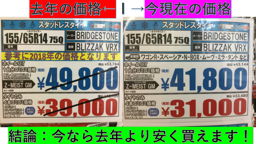 今なら去年よりも安く買えます!スタッドレスタイヤ!