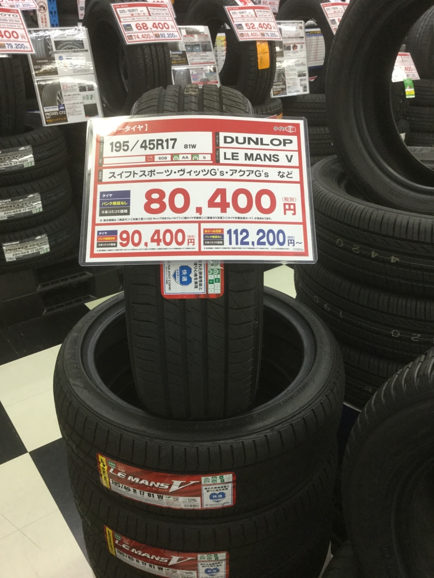 DUNLOP LE MANSⅤ 195/45R17 ¥80,400(税抜き) スイフトスポーツ、ヴィッツG`s、アクアG'sなど